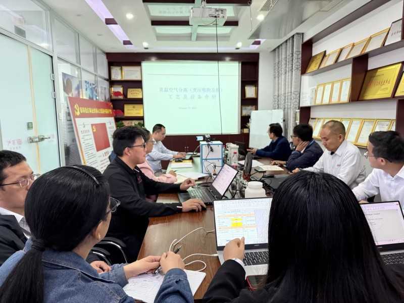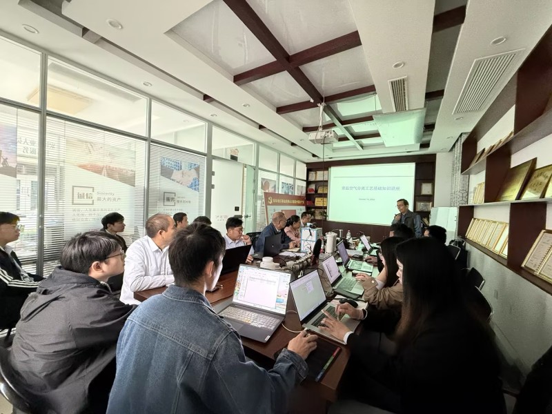 培训中,沈老师简要介绍了本次培训的目的,并结合气体设备市场,重点介绍了常温空气分离工艺基础知识、常温空气分离(变压吸附及膜)工艺及设备、碳分子筛及变压吸附制氮技术、压缩空气膜干燥工艺及设备等知识,通过深入浅出的现场讲解和提问方式,鼓励学员们主动思考、积极发言。