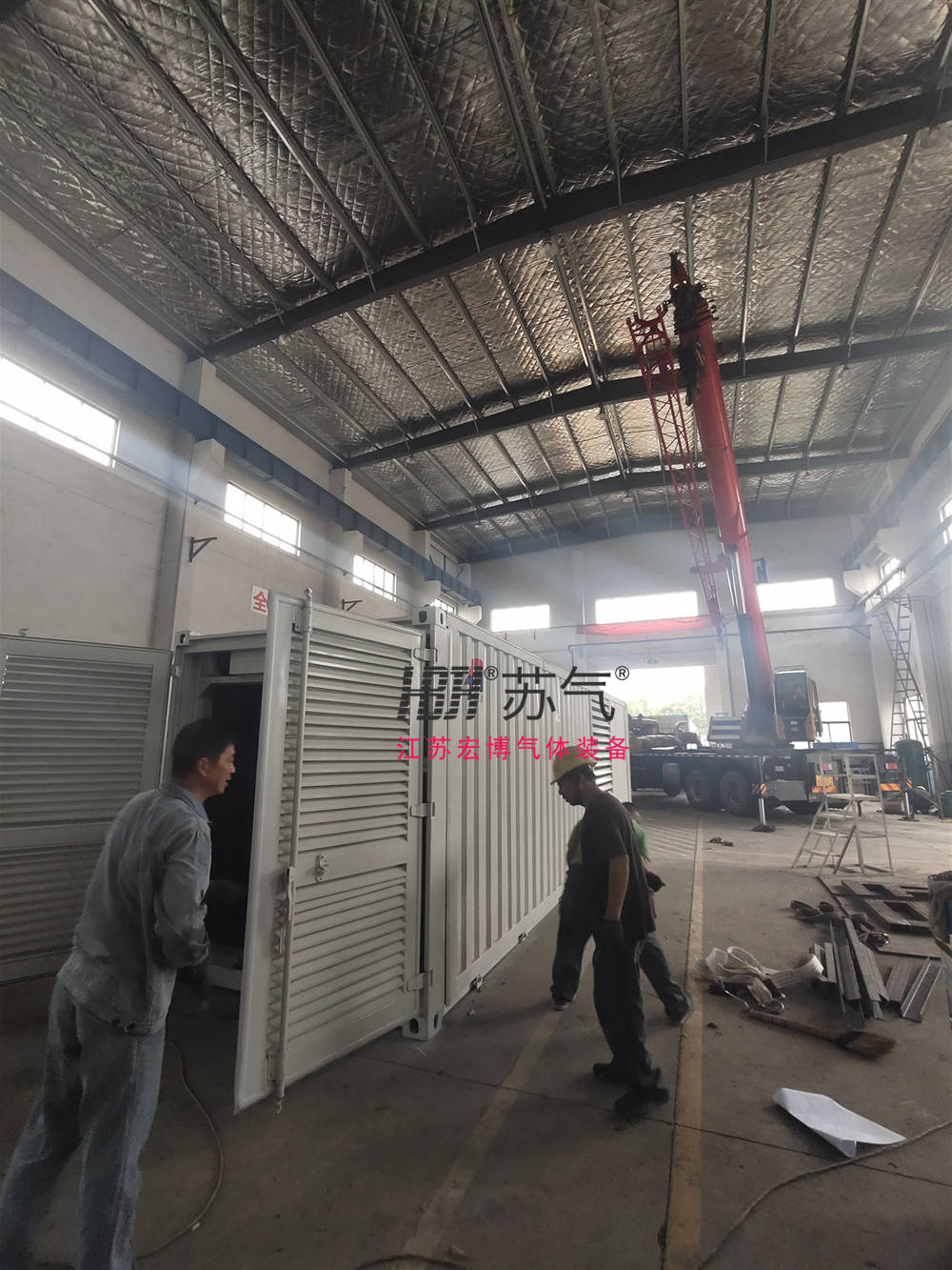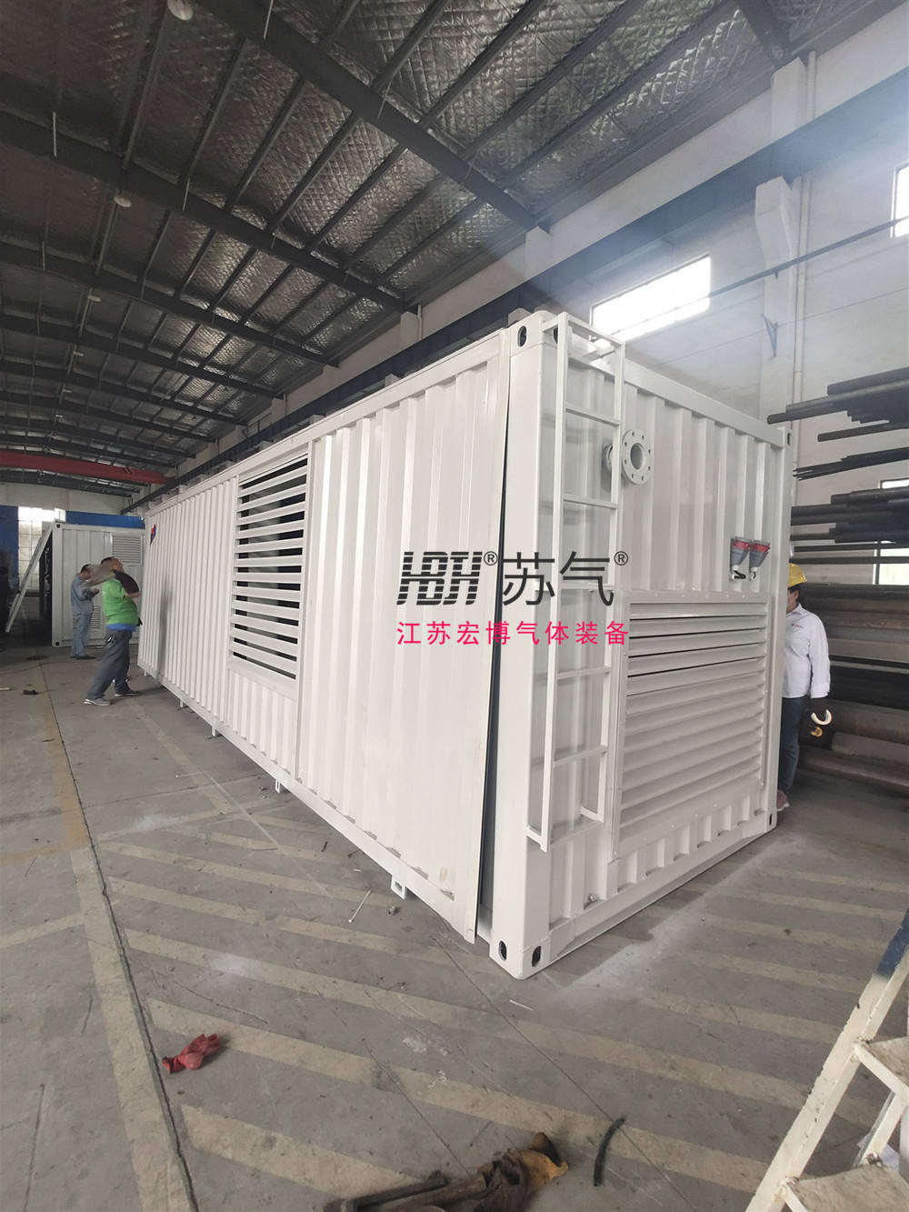 为便于移动作业,可以将制氮机整体安装在集装箱内,在不同的作业区之间移动使用。
