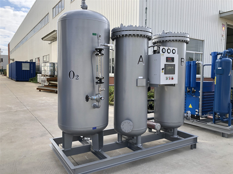 The PSA oxygen plant uses clean compressed air as raw material and high-quality zeolite molecular sieve as adsorbent to produce oxygen from air under a certain pressure. After purification and drying of compressed air, pressure adsorption and desorption are carried out in the adsorber. Due to the aerodynamic effect, the diffusion rate of nitrogen in zeolite micropores is much faster than that of oxygen. Nitrogen is preferentially adsorbed by zeolite, and oxygen is enriched in the gas phase to form finished oxygen. After decompression to atmospheric pressure, the adsorbent desorbs the nitrogen and other impurities adsorbed to realize regeneration. Generally, two adsorption towers are set up in the system, one for adsorption and oxygen generation, and the other for desorption and regeneration. The PLC program controller controls the opening and closing of the pneumatic valve to make the two towers circulate alternately, so as to obtain high purity oxygen (93% ± 2).