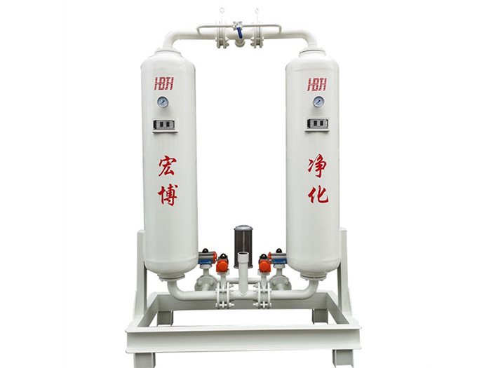 无热吸附式干燥机是利用变压吸附的原理,使干燥机在管网压力下吸附,然后在切换到大气压下脱附,并从干燥机出口引回约12-14%的干燥成品气对干燥剂进一步净化再生。双塔交替进行以上过程,向用气点提供干燥的压缩空气。