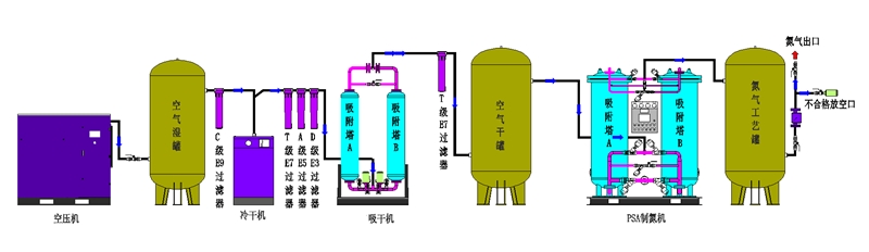 变压吸附制氮装置工艺流程图