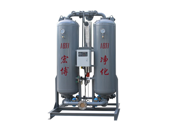 零气耗微热吸附式干燥机,结合了变压吸附和变温吸附的优点,使用再生气流在升高温度后对干燥剂进行加热再生,本系列产品是配合PSA变压吸附制氮制氧行业使用,利用宏博尾气回收专利技术使得干燥机在再生的过程中不在耗损成品压缩空气,实现零气耗。